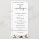 Flores e folhagens aquarela cor-de-rosa e ameixa, programa de casamento. O programa apresenta caligrafia fofa de "casamento" com várias linhas para listas de texto personalizadas para a ordem dos eventos da cerimônia, festa de casamento e nota de agradecimento.