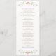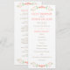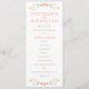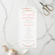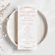 Raminhos florais charmosos em estilo folclórico em tons suaves de pêssego, coral e verde enquadram este programa de cerimônia simples e caprichoso em um fundo branco limpo. Seus nomes, data e ordem completa da cerimônia são apresentados em tipografia quente em tons de pêssego com um divisor de acento de ponto divertido. O verso apresenta seu casamento e um agradecimento. Totalmente personalizável em ambos os lados.