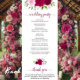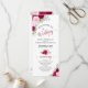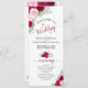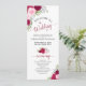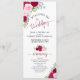 Este belo programa de casamento apresenta um elegante design gráfico floral com rosas pintados à mão em tons de rosa-quente, magenta, e pincelada sobre um fundo branco. Os títulos são escritos em caligrafia com script de rico, e há espaço para os detalhes da sua cerimônia e festa de casamento, assim como um obrigado curto para o seu convidado. É uma maneira maravilhosa de dar as boas-vindas aos seus amigos e familiares à sua celebração de casamento.