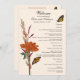 Uma perfeita dália de laranja queimada com caule de trigo e rubi adorna botânica este programa de casamento esfarrapado com borboletas monarcas. O programa dá todos os detalhes importantes do seu dia especial. Esta natureza inspirou a suíte de papelaria de casamento outono é rústica e chic. A coleção exude elegância e beleza natural. Que esta harmoniosa mistura de cores e design do outono crie uma celebração inesquecível.