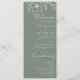 Este programa de casamento floral de destino verde-boho é perfeito para um casamento rústico. A design apresenta flores e flores de maçã aquarela em fundo verde.