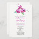 Estes programas de casamento apresentam flores e folhas de orquídeas roxas e aquarelas. A frente do cartão tem a cerimônia e a parte traseira do cartão lista a festa noiva. Estes programas de casamento fazem parte de uma coleção que inclui um cheio de papelaria de casamento que você pode personalizar para o seu casamento. Visite nossa loja para ver o intervalo de cheios.