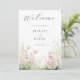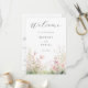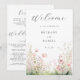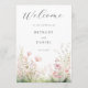 Este design apresenta uma delicada ilustração em aquarela de flores silvestres em tons de verde e rosa.