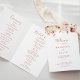 Este programa de casamento floral dobrado com caligrafia graciosa é perfeito para um casamento rústico. O design apresenta delicadas rosas brancas, bordô, rosa e folhas de outono em aquarela.