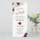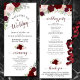 Este belo programa de casamento apresenta um elegante design gráfico floral com rosas pintados à mão em tons de vermelho, burgundy, e cor-de-rosa pincelada em um fundo branco. Os títulos são escritos em caligrafia com script de rico, e há espaço para os detalhes da sua cerimônia e festa de casamento, assim como um obrigado curto para o seu convidado. É uma maneira maravilhosa de dar as boas-vindas aos seus amigos e familiares à sua celebração de casamento.