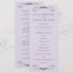 Raminhos florais charmosos em estilo folk em lavanda suave, ameixa e verde enquadram este programa de cerimônia simples e caprichoso em um fundo de lavanda pálido. Seus nomes, data e ordem completa da cerimônia são apresentados em tipografia moderna e limpa com um divisor de acento de ponto divertido. O verso apresenta seu casamento e um agradecimento. Totalmente personalizável em ambos os lados.