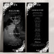 Informe aos seus convidados sobre o programa de casamento com este elegante cartão de programa, com foto escura desbotada, floral elegante preto e branco e seu texto personalizado. Adicione facilmente seus próprios detalhes clicando na opção "personalizar".