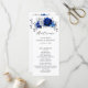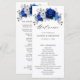 Elegante programa de casamento sobre o tema prata azul real, com elegante buquê de flores azuis, Marinhos, prata, cor branca pura, e folhas verdes de eucalipto. Entre em contato comigo para obter ajuda sobre a personalização ou se você precisar de outro produto com este design.