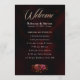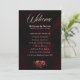 Elegante chic Red Burgundy e programa de casamento preto. Ponha o tom para uma comemoração de tirar o fôlego com este elegante cartão do programa de casamento gótico, com uma mistura dramática de florais vermelhos e negros profundos. Rosas arrojados ricos, folhagem escura e sofisticados sotaques góticos criam uma estética impressionantemente romântica e sofisticada. A tipografia refinada, que combina uma escrita elegante com fontes serif clássicas, garante um eterno, ainda que delicado, atrativo. Perfeito para guiar convidados através de sua cerimônia, este cartão de programa adiciona um toque de mistério e altruísmo enquanto complementa seu tema de casamento gótico, humorístico ou inspirado em vintage.