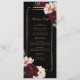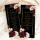Personalize este belo cartão de programa de casamento, fácil e rapidamente. Basta clicar no botão Editar usando ferramentas de Design para editar o texto, alterar o estilo da fonte, a cor e o tamanho. Apresentando lindas e realistas flores de burgôs, pinceladas, em forma de pénia contra fundo preto. Personalize esta placa de programa de lado duplo com a sua ordem de eventos e lista de festas de casamento. Itens correspondentes disponíveis no repositório. c) Paperie fina somerset