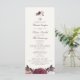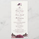 Elegante Purple Floral Wedding Program, desenhado com flores pintadas à mão com estilização do tipo aquarela. Este é um design elegante para todas as estações. Personalize este design com as informações da sua cerimônia e no verso, informações de festa de casamento e obrigado personalizado. A cor de fundo está definida como esbranquiçada; entretanto, você pode escolher uma cor de preenchimento de sua escolha.