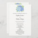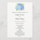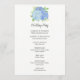 Estes programas de casamento apresentam flores e folhas de hidrocoloria azul de hydrangea. A frente do cartão tem a cerimônia e a parte traseira do cartão lista a festa noiva. Estes programas de casamento fazem parte de uma coleção que inclui um cheio de papelaria de casamento que você pode personalizar para o seu casamento. Visite as páginas de coleta em nossa loja para ver o intervalo de cheios.