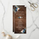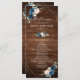 Programa de casamentos geométricos florais azuis-marinhos-escuros, com buquê elegante de azul-marinho, azul-real, branco, rosa de pincel e folhas verdes-sábias de eucalipto, e elegante quadro geométrico neutro de brilho no fundo da madeira rústica. Entre em contato comigo para obter ajuda sobre a personalização ou se você precisar de outro produto com este design.