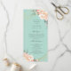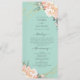 Aqui está o programa perfeito para o seu próximo casamento. Se você está apaixonado pelo tema elegante do casamento verde da menta e você também ama ouro e florais, aqui está seu jogo perfeito. Este design apresenta peonias elegantes e rosa-buds em tons de pêssego e creme embebidos em folha de ouro falsa, juntamente com uma forma geométrica falsa de folha de ouro rodeada dos detalhes do seu programa de casamento com um fundo de verde de menta na frente e atrás. Todo texto é facilmente personalizado usando os campos modelo fornecidos. Veja a coleção de produtos complementares de suite de casamento. Se você tiver uma pergunta sobre design ou quiser ver este design em outro produto, por favor, sinta-se à vontade para entrar em contato comigo em jschmidtdesignworks@gmail.com. Design © Judith Schmidt.