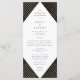 Este é um cartão de montagem ou programa de cerimônia de casamento. Maravilhoso casamento teórico da Boêmia. Vintage Na moda Boho. Um design formal elegante no Excelente Geométrico Deco Gatsby design surpreendente com linhas de deco no estilo Gatsby do Excelente. Muito moderno, moderno e elegante. Folha de Ouro na parte traseira e na frente do cartão, dando detalhes intrincados nos seus programas de casamento para um casamento inspirado em boho, embelezando seu programa. Estes programas para felicitar o Wedding Suite ou ser uma parte separada de qualquer característica de casamento. Rico e casamentos formais. Avant-Garde.