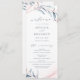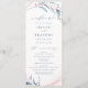 Design de folhagem botânica de cor azul-aquática, poeirenta, com folha de ouro falso, rosa, e estrutura geométrica, com roteiro, simples e elegante, programa de casamento de excelente para o casamento rústico de verão verde e ouro, casamento de jardim botânico primavera. Ver todas as peças correspondentes na coleção