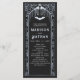Adicione um toque de romance escuro ao seu grande dia! Estes programas de casamento góticos apresentam uma design de catedral vampiro espantosa em prata e preto, perfeita para uma história de amor tão eterno como encantadora. Peça agora e deixe seus convidados sentirem a magia de sua celebração gótica! NOTA: A PRATA incluída neste item NÃO é folha REAL e é impressa em formato plano.