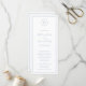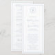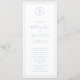Simples programa de casamento azul empoeirado com seu monograma em um círculo no topo e seus detalhes de casamento cercados por uma borda fina. Seus nomes e cabeçalhos estão em uma fonte elegante de script manuscrito. O esquema clássico e tradicional faz deste programa excelente para um casamento formal.
