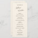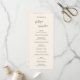 Programa moderno de casamento com um design simples e mínimo com seus nomes junto com os cabeçalhos no verso em um roteiro manuscrito contemporâneo. A paleta de cores é creme e pode ser alterada na ferramenta de edição de design. Esta design contemporânea funciona bem para qualquer estilo de casamento.