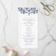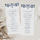 Nosso elegante programa de casamento mostra os detalhes da sua cerimônia em azul rico marinho, acentuado com uma fronteira geométrica inspirada por Marrocos ao longo do topo em marinho e branco. O verso lista os membros da sua festa de casamento com campos de texto facilmente editáveis. Coordena-se com a nossa coleção de convites de casamento Marraquexe. Use os campos modelo para adicionar informações sobre sua cerimônia e noivado e clique em "Personalizar" para reposicionar elementos, se necessário. Precisa de ajuda? Entre em contato comigo através do link "Perguntar a este Designer" nesta página.