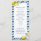 Adicione um toque de charme italiano à sua cerimônia de casamento com este programa de casamento floral de limão. Projetado com lindos limões e azulejos azuis, esta ordem de serviço de casamento irá perfeitamente combinar com o seu casamento de destino, cerimônia de casamento italiana ou casamento mediterrânico de verão!