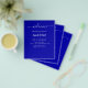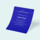Note que este programa/menu está em papel folheto e muito fino. Para programas/menus mais espessos (mesmo design) visite nossa loja. Um clássico programa de casamento e cardápio. Um fundo azul real. Texto branco. Personalize e adicione seu nome, data e programa e menu.