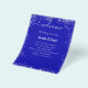 Por favor, note que este programa e menu estão em papel folheto e muito finos. Para programas/menus mais espessos (mesmo design) visite nossa loja. Um clássico programa de casamento e cardápio. Um fundo azul real. Texto branco. Decorado com falso brilho prateado, faíscas. Personalize e adicione seu nome, data e programa e menu.