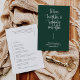 Este elegante programa plano de casamento apresenta uma caligrafia elegante e simples fonte de tipografia sans serif em um fundo verde esmeralda para um olhar minimalista e moderno limpo, que é uma bela maneira de informar aos seus convidados a ordem da sua cerimônia de casamento e dar aos seus hóspedes um favor de casamento. A simplicidade desta design adiciona um toque de elegância ao seu casamento. Funciona bem com muitos temas de casamento e, definitivamente, um excelente adicional à sua papelaria de casamento. Simplesmente personalize os nomes e a redação em alguns passos fáceis e personalize o programa para lhe dar um belo toque pessoal. Note-se que a elegante caligrafia das frases "amar, rir e alegremente para sempre", juntamente com as linhas e outras trabalho de arte gráficas e elementos não pode ser editada, suprimida ou movida. Eles estão consertados.