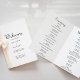 Este clássico programa de núpcias minimalistas da caligrafia é perfeito para um casamento rústico. O design apresenta uma bela fonte preta em um fundo branco para embelezar seu evento. Inclua uma citação ou mensagem curta, ordem de serviço, festa de casamento e obrigado da mensagem.