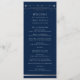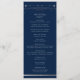 O Programa de Casamento Astronômico da Lua Sun Silver Sun Star Star Mystical apresenta sol prateado, lua e estrelas com um quadro de ouro sobre um fundo azul escuro de marinho com a ordem de cerimônia na frente e festa de casamento e obrigado no reverso em um roteiro de ouro moderno. Personalize editando o texto nas caixas de texto fornecidas. Projetado para você por ©Evco Studio www.zazzle.com/store/evcostudio