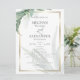 Programa Casamento de Aquarela | Certifique-se de que seus convidados sabem o que está acontecendo e quando esperar que evento - no verso está uma lista de toda a festa de casamento. Folhas verdes tropicais modernas e elegantes ao redor de uma estrutura geométrica dourada em cantos diagonais. O reverso é uma cor complementar coordenada. Personalizar texto, estilo de fonte, cor e tamanho. Arte original criada para o BarefootBride™ por © WhimsicalArtwork™. Esta é parte de um Conjunto de Papelaria de Casamento com casamento, chá de fraldas e outros artigos de papelaria.