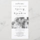 Programa de Aluguer Simples de Foto Moderno com Script Elegante para a sua cerimônia de casamento. Elke Clarke © Substitua a foto da amostra pela sua e use os campos de modelo para adicionar facilmente seu texto. O menu Personalizar também pode ser usado para alterar a cor da fonte e do plano de fundo para se adequar ao seu esquema de cor do casamento.