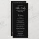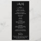 Programa de casamento preto moderno com um simples design com seus nomes em uma tipografia elegante e seus detalhes de evento em uma fonte minimalista sans serif. Este programa de casamento chic funciona bem com qualquer estilo de casamento.