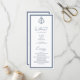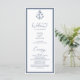 Este elegante programa de casamento náutico apresenta um monograma de âncora no topo com as iniciais da noiva e do noivo, com uma moldura dupla azul-marinho, um fundo branco e texto clássico elegante azul-marinho com caligrafia cursiva.
