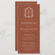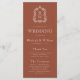 Este elegante programa de casamento inspirado em vintage apresenta um par de iniciais monográficas brancas em letra serif aberta acima e abaixo de uma linha divisória e rodeadas por uma crista botânica de arte em linha num fundo de terracota.