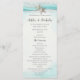 Romance de estrela-do-mar, fita e renda na praia, programa de casamento turquesa.