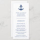 Programa náutico de casamento com uma âncora azul marinho com seu monograma em ambos os lados, sobre um fundo branco. A frente tem seus eventos de cerimônia e a parte de trás tem sua festa de casamento. Um design simples, mas elegante, perfeito para uma celebração temática na praia no verão.