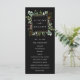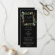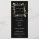 Este programa de casamento apresenta cor d'água eucalipto, folhas verdes, bagas vermelhas, galhos de pínus com falso quadro quadrado de ouro sobre fundo preto. Para personalização mais avançada deste design, clique no link "Personalizar mais". Itens correspondentes também estão disponíveis.