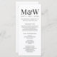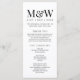 Programa Moderno de Casamento Negro e Branco. Na moda, design elegante com texto preto em branco. A frente inclui as iniciais do casal, a data do casamento, a seção de obrigado e o programa da cerimônia. A parte traseira apresenta os nomes da festa de casamento. Personalize com seu próprio texto frente e verso. Todas as cores, texto e fontes podem ser personalizadas por você usando as ferramentas fornecidas nos menus de personalização e personalização do Zazzle. Visite nossa loja, Austen & Grace, para ver a suíte de casamento de cheios, produtos correspondentes e muito mais, e entre em contato conosco se precisar de assistência contact@austenandgrace.com