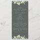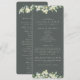 Um programa de casamento verde de cinzas escuras/ordem de cerimônia, com um esboço de cerimônia condensada e obrigado sua mensagem na frente e uma lista para uma grande festa de casamento no verso. Apresentando uma cobertura de morangos pintados manualmente e eucalipto na frente e um caule atrás. Todo o texto é totalmente editável. Veja esta Coleção na minha loja para programas com textos/layouts de alternativo e em tamanhos/cores/formas diferentes. Itens de coordenação também disponíveis.