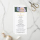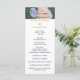 Bem-vindos à cerimônia de casamento de sua autoria em um elegante roteiro preto contra rosa rosa-rosa pastel e verde. Nomes de noiva e noiva em cor dourada contra fundo branco nítido. A parte de trás tem Festa de casamento escrita em um script de cinza escura. Projetado para até seis damas de honra e nomes de padrinhos de casamento. Se você tiver uma festa de casamento menor, simplesmente exclua as bridesmaids extras e as linhas de padrinhos de casamento não necessárias e remova o espaçamento extra entre elas, clicando no botão deletar para mover a linha para cima para manter o espaçamento de uniformidade. Design de fotografia original © TamiraZDesign.
