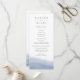 Este programa de casamento de chic costeira combina com a nossa coleção de Ocultos do Bei, com uma grande lavagem de cor d'água de azul-piscadela empoeirado ao longo do fundo, com o seu texto personalizado em letras de cinza suave. Personalize a frente com o programa de cerimônia e adicione a festa de casamento atrás.