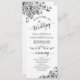 Este belo programa de casamento apresenta um elegante design preto e branco com caramujos e espirais nos cantos. Os títulos são escritos em caligrafia de rico, e há espaço para seus detalhes de cerimônia e festa de casamento, assim como um obrigado curto para seus convidados. É uma maneira maravilhosa de dar as boas-vindas aos seus amigos e familiares à sua celebração de casamento.