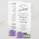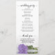 Este belo programa de casamento apresenta um elegante design com um solteiro longo e púrpura clara ou rosa de cor lavanda deitado do lado refletindo na água. Os títulos são escritos em caligrafia de rico, e há espaço para seus detalhes de cerimônia e festa de casamento, assim como um obrigado curto para seus convidados. É uma maneira maravilhosa de dar as boas-vindas aos seus amigos e familiares à sua celebração de casamento.
