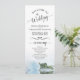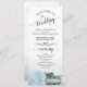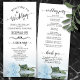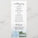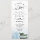 Este belo programa de casamento apresenta um design elegante com um solteiro longo e pálido, azul poeirento ou rosa de cor azul pálido, deitado do lado, refletindo na água. Os títulos são escritos em caligrafia de rico, e há espaço para seus detalhes de cerimônia e festa de casamento, assim como um obrigado curto para seus convidados. É uma maneira maravilhosa de dar as boas-vindas aos seus amigos e familiares à sua celebração de casamento.