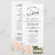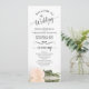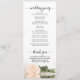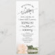 Este belo programa de casamento apresenta uma elegante design com um solteiro de cor de pêssego pálido e pálido, de longo rosa, deitado de lado refletindo na água. Os títulos são escritos em caligrafia de rico, e há espaço para seus detalhes de cerimônia e festa de casamento, assim como um obrigado curto para seus convidados. É uma maneira maravilhosa de dar as boas-vindas aos seus amigos e familiares à sua celebração de casamento.