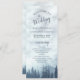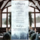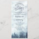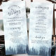 Este belo programa de casamento apresenta uma design rustica, mas elegante, com uma paisagem aquática de montanhas cobertas de pinheiros ou de pinheiros azuis envoltos em neblina ou nevoeiro. Os títulos são escritos em caligrafia de rico, e há espaço para seus detalhes de cerimônia e festa de casamento, assim como um obrigado curto para seus convidados. É uma maneira maravilhosa de dar as boas-vindas aos seus amigos e familiares à sua celebração de casamento.