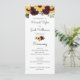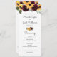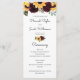 Este programa de casamento de girassol e rosas é perfeito para uma cerimônia de jardim ao ar livre. Apresenta belos girassóis e rosas de cor d'água com verde-sábio. É perfeito para um casamento no jardim ou um casamento no celeiro de um país. O esquema de cores de amarelo, burgundy e verde-sábio é uma bela paleta colorida para um verão ou casamento outono tardios. Para mais personalização, clique no link "personalizar mais" e use nossa ferramenta design para modificar esse modelo.