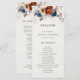 Elegante azul-Marinho, Terracotta, programa de casamento do tema floral da Terra Laranja com buquê elegante de azul-Marinho, rosas de cor Terracotta e folhas de eucalipto. Entre em contato comigo para obter ajuda sobre a personalização ou se você precisar de outro produto com este design.