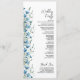 Bem-vindos aos seus convidados para a cerimônia de casamento com este programa de casamento russo de flores silvestres da boêmia. Apresenta um linho azul de recompensa ou flores de piscadela em fundo branco clássico. Os títulos são escritos em letras elegantes e há espaço para os detalhes da cerimônia, festa de casamento ou noiva, e uma nota curta de agradecimento. O texto justificável dá ao programa uma visão única e moderna.